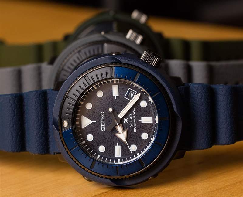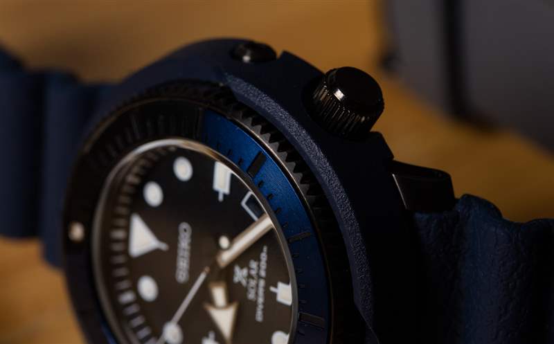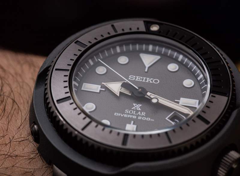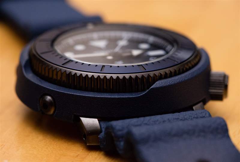 金槍魚風格的箱子之所以這樣命名,是因為圓形的高箱子在一些收藏家看來就像一個金槍魚罐頭。這款較小的 Tuna 表殼仍為 47 毫米寬(優(yōu)于 50 毫米或更大),但非常耐磨。訣竅是極短的表耳和舒適的表帶。在我看來,這款手表的佩戴舒適度非常高,新的紋理硅膠表帶輕松舒適,緊貼手腕。精工與手表表盤上的表帶紋理相匹配——這是我以前在 Prospex 系列中從未見過的。總的來說,精工在紋理表盤方面往往做得很好——想想著名且一直很受歡迎的 Grand Seiko Snowflake 表盤。毫無疑問,精工在其考究或正式的手表系列中獲得了紋理表盤的成功,我敢肯定,看看這種趨勢是否繼續(xù)在他們的運動手表(例如 Street Series)中具有吸引力會很有趣。精工開玩笑地暗示,表盤的紋理是為了暗示路面的外觀——因為這些是“街頭系列”手表。