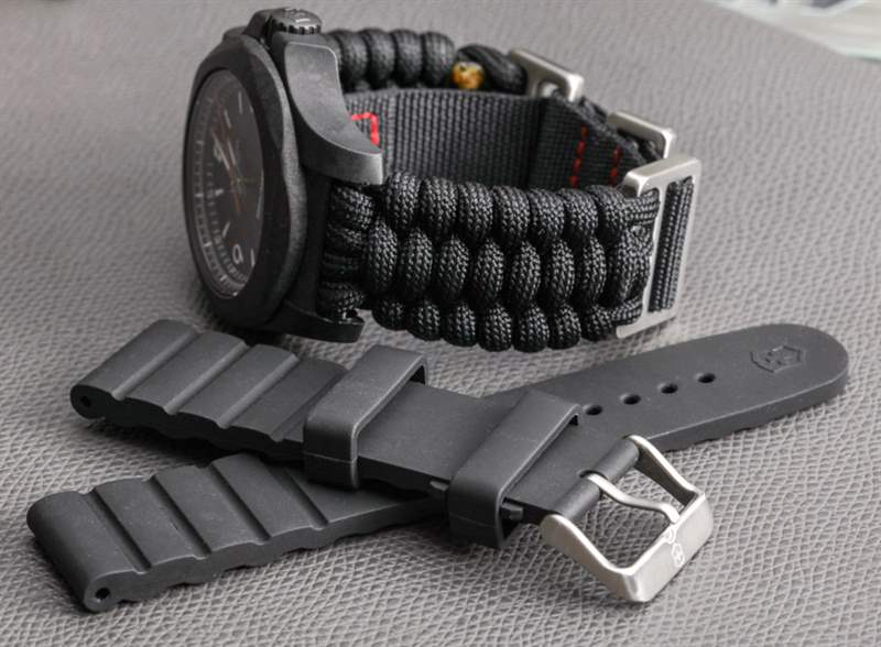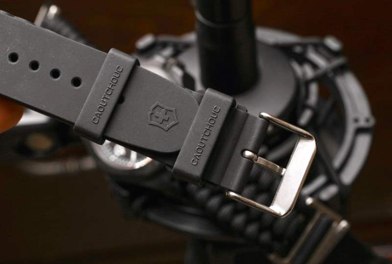 表殼與其他 43 毫米寬的 Victorinox 瑞士軍 INOX 手表的形狀相同,并且仍然防水 200 米。表殼的后部是鋼制的,我認(rèn)為也有一個鋼制內(nèi)殼。此外,不要忘記,由于這是一款 INOX 手表,Victorinox Swiss Army 傳統(tǒng)上提供橡膠表殼護(hù)罩,您可以將其放在手表上以增加耐用性。