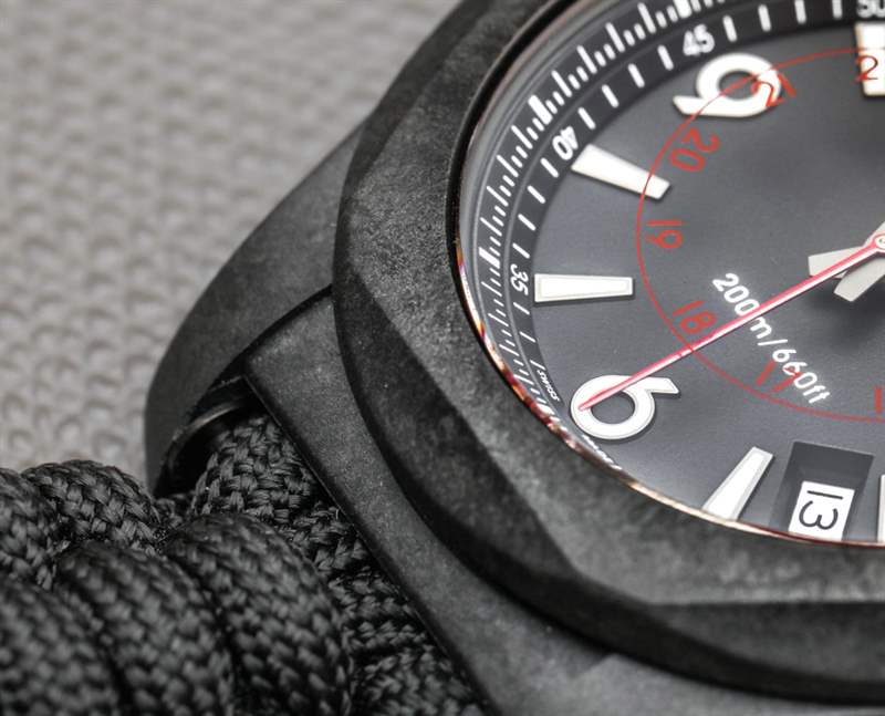 不是每個人都喜歡碳纖維外殼的外觀。它有一種未完成的工業(yè)外觀,根據(jù)您的口味和觀點(diǎn),它會很酷或太原始。我不知道我是否想一直佩戴碳表殼,但作為運(yùn)動表,我認(rèn)為它很酷。它在今天也可以說是相當(dāng)時尚,而且材料本身講述了一個很好的故事,我認(rèn)為很多人都會欣賞。
