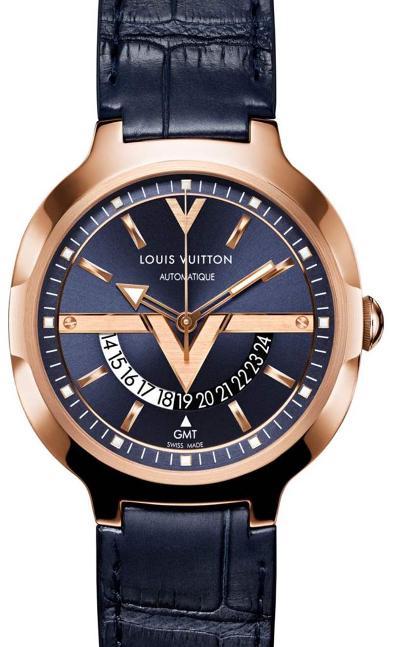 表殼的獨特形狀不僅源于整體輪廓,還在于表殼本身的各種角度和曲線。Voyager GMT 腕表最具爭議的地方在于表盤。這不是 Louis Vuitton 第一次在品牌推廣方面有點“雄心勃勃”,但在這里他們更進了一步。GMT盤上指向當前時間的指示箭頭也恰好是Louis Vuitton的大“V”。您再次看到 V 作為 12 點鐘的小時刻度標記,兩個“V”標記夾著路易威登標志。拉絲和刻面 V 形本身看起來很酷,但它們無疑也是表盤設計的重要組成部分。根據您對顯眼品牌的看法,這是好事還是壞事。