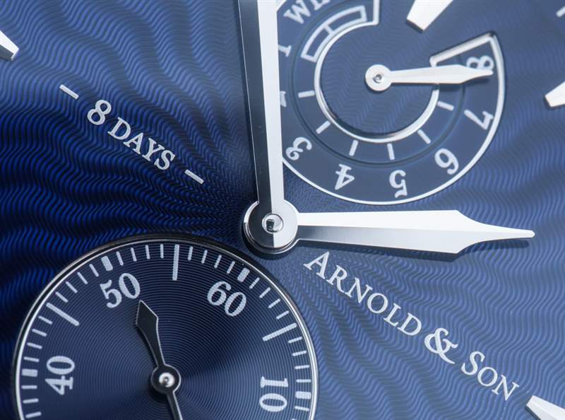 表盤上的易讀性和性感性很高,在我看來,這些表盤恰到好處地融合了優雅和精致,并且有吸引注意力的趨勢。堅固而傳統的指針增添了陽剛之氣,Arnold & Son 甚至能夠在組合中插入日期指示器窗口(在輔助秒盤中)。