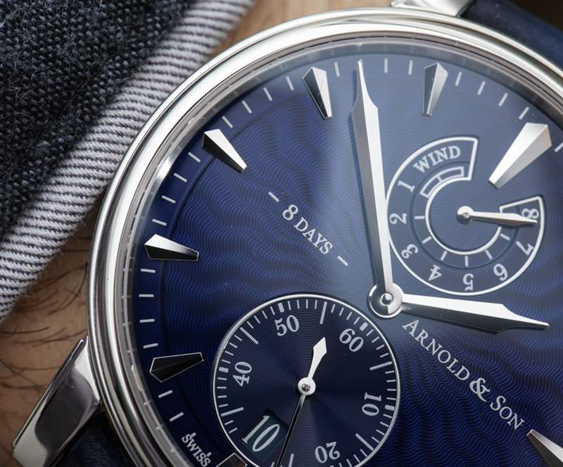 真正讓表盤與眾不同的是機刻扭索飾紋,然后上漆上色。“波浪線”風格的圖案(我敢肯定,這就是古代講法語的鐘表師對它們的稱呼—— “le squiggelle!”)很可愛,Arnold & Son 八天皇家海軍腕表的表盤也很漂亮提供藍色、黑色或銀色……以及漂亮的配套小牛皮表帶。廣告訊息廣告信息結束