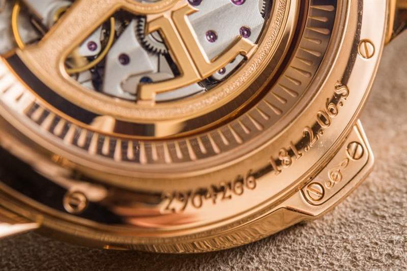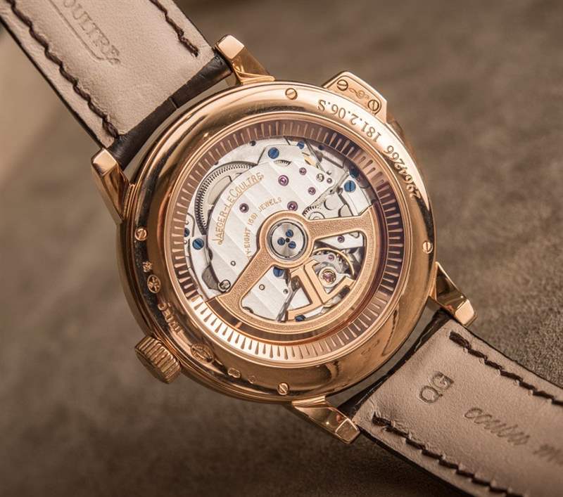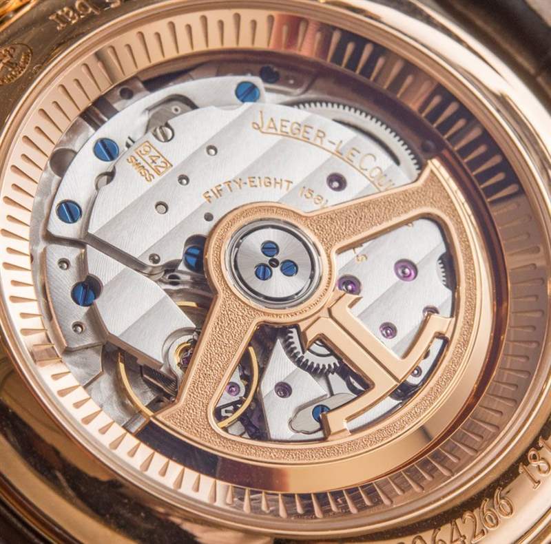 942 機芯以 4 赫茲頻率運行,具有 40 小時的動力儲存,由多達 437 個零件制成,比您簡單的手動上鏈計時手表多出約 300 個零件。22k 玫瑰金自動擺陀帶有酷炫的全新 JLC 風格標志,深嵌在表殼內(nèi),旨在實現(xiàn)最大的報時共鳴。像這樣將實用性與以愛好者為導(dǎo)向的高度復(fù)雜功能相結(jié)合的機芯是積家的專長。