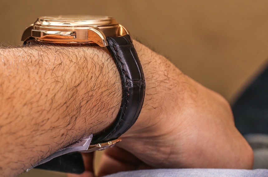 39 毫米的寬度對于現(xiàn)代三問報時器來說實際上很小。它們變得更小了,但這種尺寸的男士三問報時器在當今的手表市場上幾乎聞所未聞。這實際上比我喜歡的大多數(shù)手表都要小,但厚度為 12.1 毫米,Jaeger-LeCoultre Master Grande Tradition Minute Repeater 真的不會感覺太小,即使它也適用于更纖細的手腕。