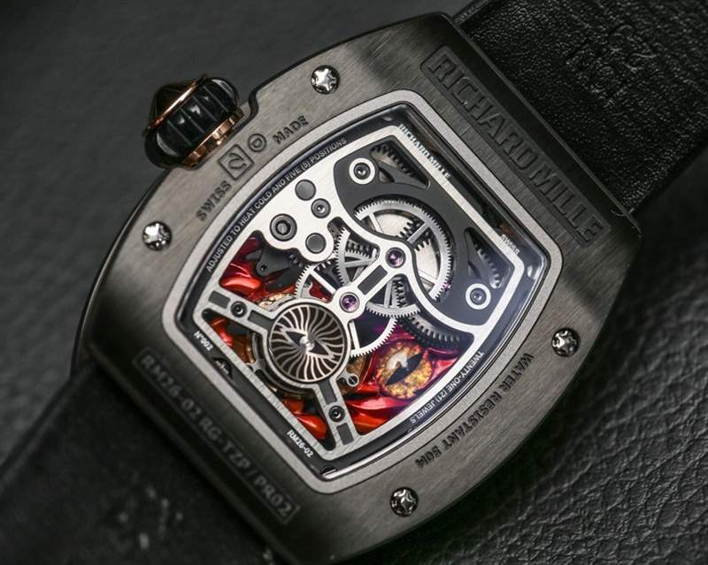 Richard Mille正迅速成為高預算微型模型愛好者的首選品牌。在香港 Watches & Wonders 2015 年末新款 Richard Mille 手表中,人們可以很容易地了解到 Mille 先生對他的手表(以及其他許多東西)非常認真作為超現代的微型藝術展示。像虎龍在陀飛輪前對峙的手表,或者讓流行文化準確的理查德米勒 RM 26-02 邪眼手表被火焰籠罩之類的東西都是奇怪的主題,實際上會分散人們的注意力,讓他們無法欣賞它們的瘋狂細節是。