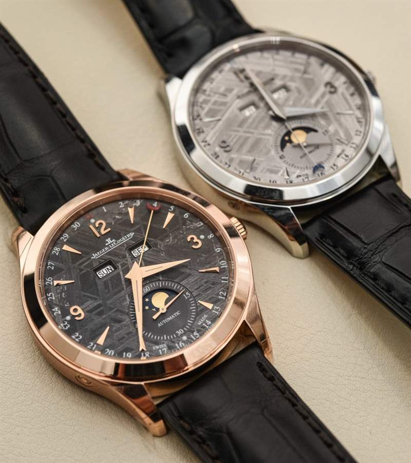 積家 ( Jaeger-LeCoultre?) 2015 年最性感的新款手表之一根本不是真正的新手表,而是積家 (Jaeger-LeCoultre) 大師日歷,有兩個隕石表盤選項,有 18k 玫瑰金(參考號 1552540)或鋼(參考號) . 1558421) 例。沒錯,您無需支付貴金屬溢價,就可以擁有隕石表盤和精鋼表殼的積家經典“三重日歷月相”風格表盤。那么,讓我們一起來看看這兩款極具吸引力的“太空”面孔大師系列腕表吧。