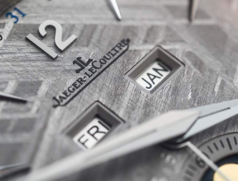 當然,積家也推出了無隕石表盤的精鋼或18k玫瑰金萬年歷腕表,搭配鍍銀表盤。那些看起來不錯,但隕石增加了視覺趣味,使時計更加獨特,在我看來,引人注目。一個合理的問題是“隕石表盤的溢價是多少?” 任一版本的答案都是 2,300 美元。因此,從標準的鍍銀表盤 Master Calendar 到 Jaeger-LeCoultre Master Calendar Meteorite 的成本要高得多。合理的價格?它并不便宜,但我想在隕石上打印更復雜,就像應用指示器和切割它一樣。最重要的是,隕石是一種稀有礦物,因此它的價格當然會高于標準金屬表盤。