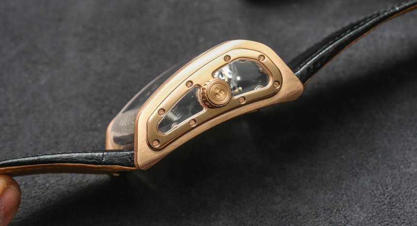 Cabestan 三軸陀飛輪表殼在手腕上并不是我所說的優雅外觀,但這并不意味著是一款優雅的手表。然而,它比其他使用轉動鼓之類的東西指示時間的 Cabestan 手表更容易閱讀。Cabestan Triple Axis Tourbillon 采用當時較為傳統的表盤。表殼本身寬 50.25 毫米,長 45.50 毫米(加上表冠則為 48.30 毫米)。它也是莊嚴的 22.30 毫米厚。這里的表殼采用 18k 玫瑰金,但 Cabestan 將采用鈦、PVD 涂層黑鈦、18k 黃金、18k 白金或鉑金打造。
