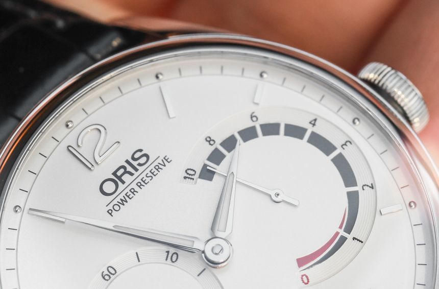 您想要 Oris Calibre 110 手動上鏈機械機芯嗎?它與所有其他內部制造的機芯有何不同?光看表盤就知道機芯是用一個小秒盤指示時間的。它還具有動力儲存指示器。不僅僅是任何動力儲備指示器,而是“非線性動力儲備指示器”。聽起來很花哨,但它是什么?好吧,這不是好事或壞事,只是動力儲備指示器的風格略有不同。你所擁有的是一個帶有指示器指針的秤,當它滿時移動得更快。這意味著一到兩天的動力儲存之間的空間大于兩天和三天之間的空間——而且從那里開始變小。在某種程度上,這更準確地代表了主發條是如何放松的,