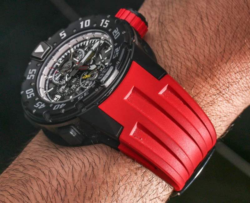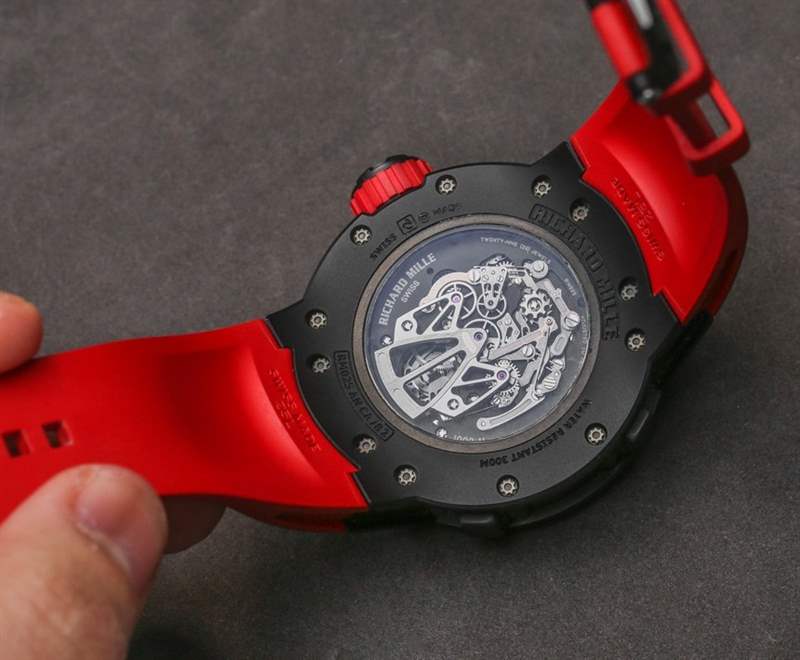 我通常不會花時間談論紅色橡膠表帶,但同樣,理查德米勒 RM 025 陀飛輪計時潛水表的表帶也是獨一無二的。表帶實際上是由一種被稱為 Kalrez 的材料制成的,這只是 Richard Mille 從其他行業(實際上需要它們)借來用于手表的眾多專業工業材料之一。Kalrez 顯然幾乎完全耐化學腐蝕,并在 327 攝氏度的溫度下保持穩定性。多虧了理查德·米勒 (Richard Mille),Kalrez 主要應用于制藥和航空航天行業,您可以在手腕上享受 Kalrez 的理論上的好處,否則會完全摧毀人體。