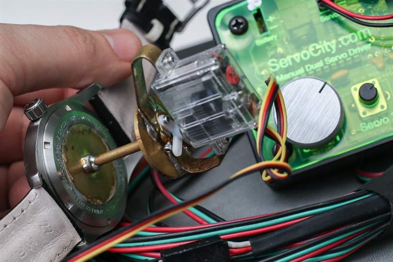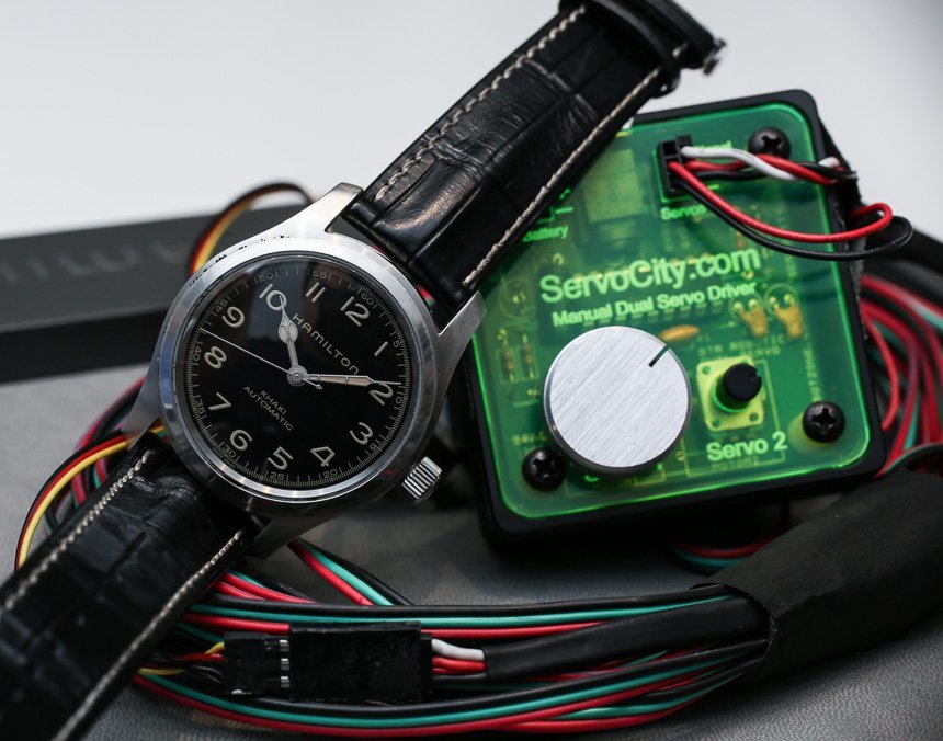 電影迷們一定很想知道《星際穿越》是如何通過秒針實(shí)現(xiàn)“摩爾斯電碼”復(fù)雜功能的。漢密爾頓告訴我,道具大師實(shí)際上能夠部分解構(gòu)機(jī)芯并插入一個小型伺服電機(jī)來移動秒針,就像電影中那樣。沒有涉及計(jì)算機(jī)圖形。然后他們能夠再次將運(yùn)動重新組合在一起。這里看到的手表就是其中一款手表,它的機(jī)芯中有一些凝膠,可以防止它有意運(yùn)行。您還可以看到返還給漢米爾頓的手表配備了伺服電機(jī)——手動操作以創(chuàng)建電影中的“摩爾斯電碼”場景。