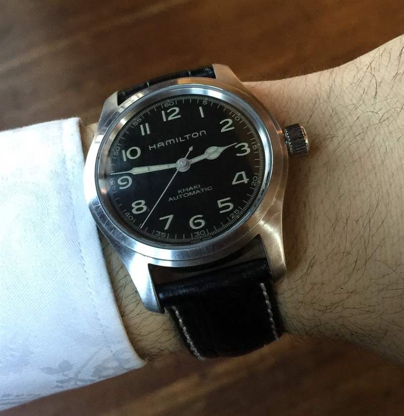 Interstellar希望推出具有美國特色的非常傳統(tǒng)的“工具風(fēng)格”時計(jì)。Murph 手表的鋼制表殼寬 42 毫米,經(jīng)過全面打磨處理,呈現(xiàn)漢密爾頓稱之為“粗糙”的外觀。簡單的階梯式表圈和大表冠讓人聯(lián)想到更經(jīng)典的時計(jì)。卡其系列風(fēng)格的表盤是黑色的,帶有做舊的夜光,并且沒有日期窗口,因此非常對稱。目前,Hamilton 不提供任何表盤上沒有日期窗口的 Khaki 手表,我強(qiáng)烈建議他們生產(chǎn)一款(即使是作為測試)很可能會帶來很好的銷量,因?yàn)楸肀P非常漂亮和清晰. 手表內(nèi)部是瑞士 ETA 2824-2 自動機(jī)芯。廣告留言廣告信息結(jié)束