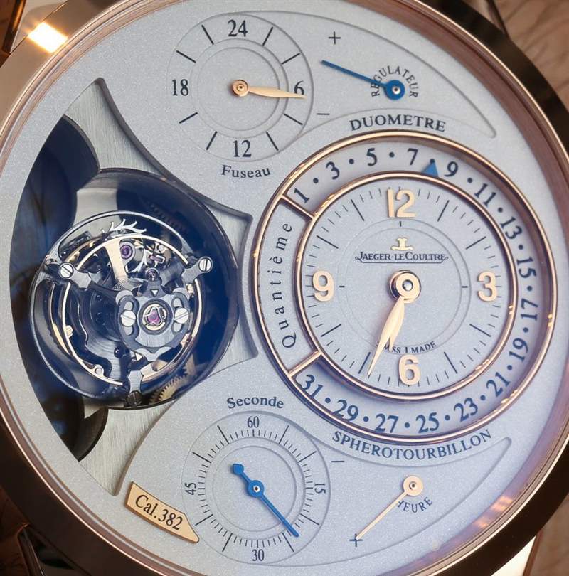 這對(duì)手表或 Jaeger-LeCoultre 來(lái)說(shuō)并不陌生。Gyrotourbillon II 有一個(gè)圓柱形游絲,而Gyrotourbillon III甚至有一個(gè)球形擺輪。在某些應(yīng)用中,這些形狀奇特的擺輪有助于更好地計(jì)時(shí)。在這種情況下,我只是覺(jué)得它看起來(lái)很酷——而且大多數(shù)人都認(rèn)為它確實(shí)很酷。整體機(jī)芯是內(nèi)部制造的 Jaeger-LeCoultre 382 口徑,適合 Duometre 系列。這意味著它有一個(gè)由德國(guó)銀制成的主夾板,并且還將用于報(bào)時(shí)機(jī)制的動(dòng)力與為其他復(fù)雜功能提供動(dòng)力的主發(fā)條分開(kāi)。因此,382 型機(jī)芯有兩個(gè)主發(fā)條盒和 50 小時(shí)的總動(dòng)力儲(chǔ)存。廣告留言廣告信息結(jié)束