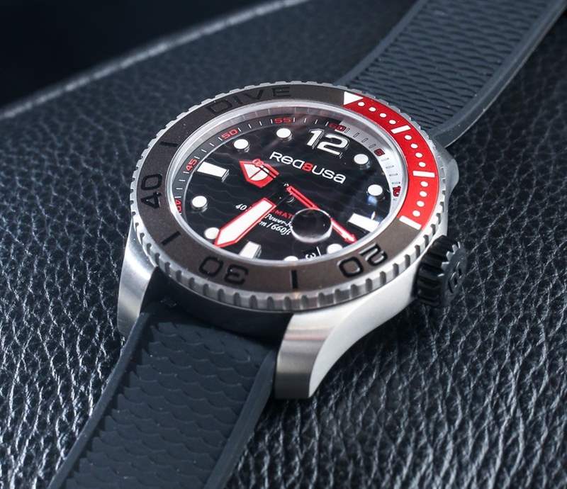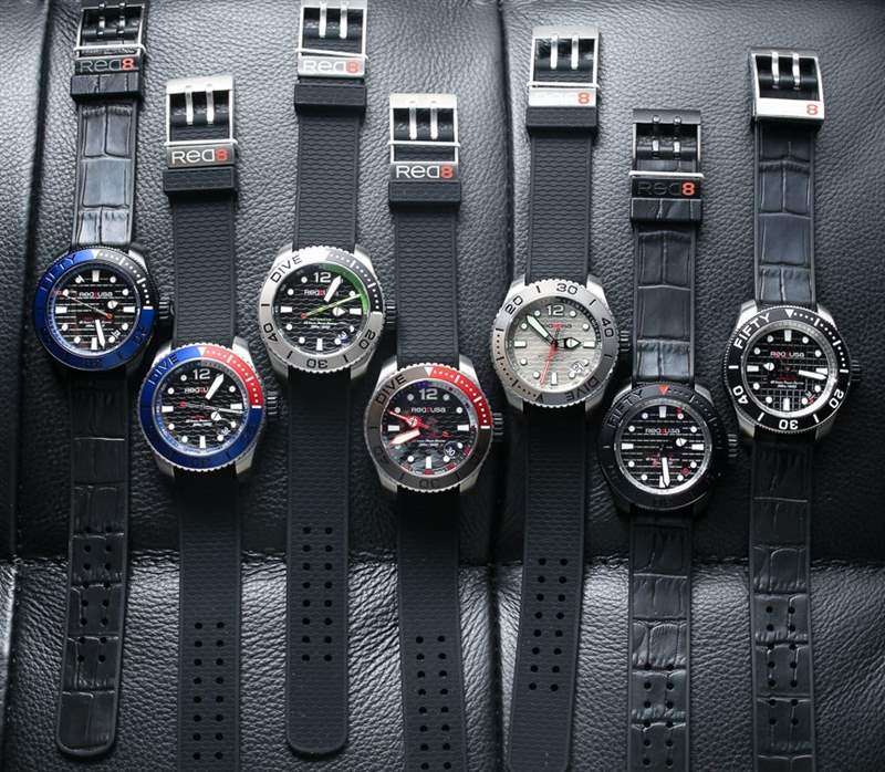 Red8USA Dive 和 Fifty 手表寬 42 毫米,防水深度達 200 米。就像我說的,Red8USA Fifty 手表采用拋光鋼表殼,而 Red8USA Dive 手表采用拉絲鈦金屬表殼。兩種型號的表冠都是黑色橡膠涂層鋼。相對于價格而言,表殼質量非常好,而且作為潛水表,它們具有旋轉計時表圈。廣告留言廣告信息結束
