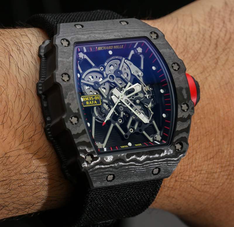 2014 年,理查德米勒 (?Richard Mille?) 發(fā)布了新系列拉斐爾納達爾 (Rafael Nadal) 時計的另一款型號,名為 RM 35-01。早在 2010 年,Richard Mille?將一款基于陀飛輪的時計戴在西班牙網(wǎng)球冠軍的手腕上,讓他在參加這項運動時佩戴,不僅震驚了鐘表行業(yè),也震驚了全世界。納達爾不僅佩戴價值超過 500,000 美元的限量版 RM027 手表贏得了獎杯,而且在此過程中也丟失/損壞了一些獎杯。