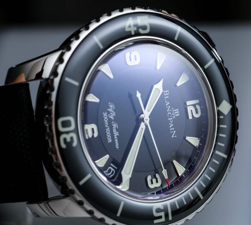 50 噚實(shí)際上是 100 米(正好是 300 英尺)。這款五十噚的防水深度為 300 米,接近 1000 英尺。顯然,寶珀在過(guò)去 60 年左右的時(shí)間里改進(jìn)了表殼。盡管這是一枚具有很高血統(tǒng)的時(shí)計(jì),但它在主題上仍然是一枚非常專業(yè)的潛水表。極其干凈的表盤(pán)甚至在 4 點(diǎn)鐘和 5 點(diǎn)鐘之間設(shè)有一個(gè)日期窗口,該日期窗口不會(huì)干擾小時(shí)刻度并放置在黑色圓盤(pán)上。真正讓表盤(pán)感覺(jué)良好的是寶珀使用的高品質(zhì)零件和表面處理。我會(huì)更進(jìn)一步地建議,這款時(shí)計(jì)是一個(gè)很好的例子,說(shuō)明優(yōu)質(zhì)組件如何使原本簡(jiǎn)單的事情變得偉大。讓我們面對(duì)現(xiàn)實(shí)吧,五十噚的整體設(shè)計(jì)——雖然高度精致——卻非常簡(jiǎn)單。真正讓它感覺(jué)像高端產(chǎn)品的是材料和組件。如果沒(méi)有這些組件和精致程度,大多數(shù)奢侈品將失去那些讓老練的消費(fèi)者如此渴望的東西。