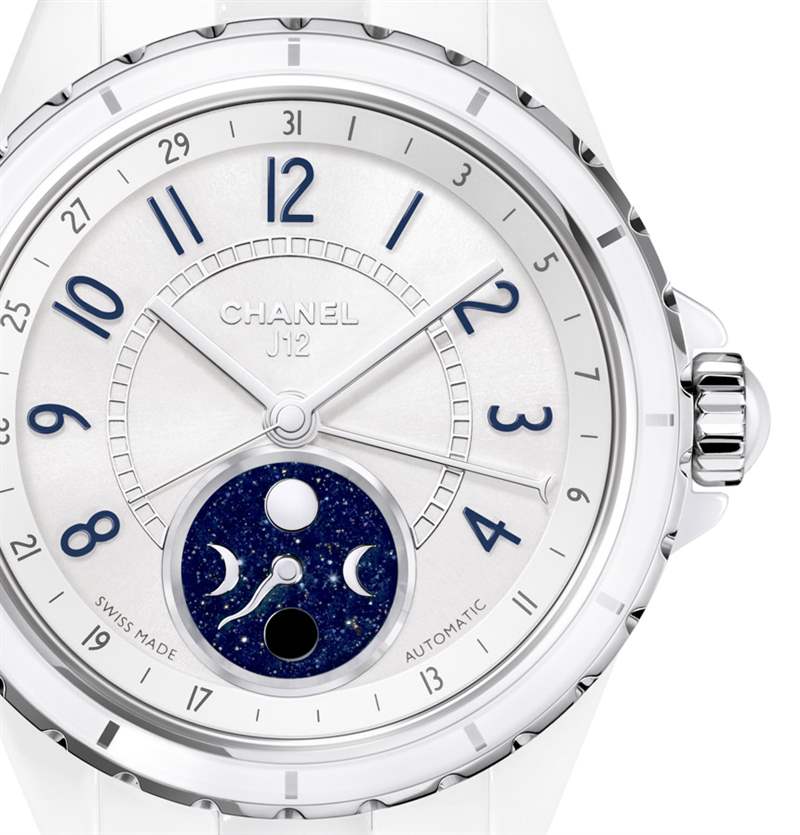 現在,在 2013 年底,香奈兒為 J12 系列增添了一個新角色 J12 月相腕表。添加的月相復雜功能正在一系列型號中首次亮相,從經典的白色 J12 到 Chromatic 型號,甚至是完全鑲嵌珠寶的限量版型號(實際上是其中兩個)。不過目前,J12 Moonphase 將僅提供 38 毫米寬尺寸。讓我們來看看新款 J12 月相腕表,它提供的不僅僅是一個新的復雜功能。