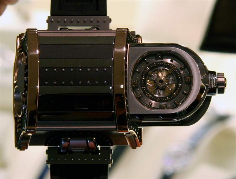 表殼的形狀與傳統手表關系不大。外觀因放置位置而異。從一個角度看,它看起來像一個早期的科幻宇宙飛船,從另一個角度看,它看起來像一個花哨的消防栓。在我看來,這些關聯是一件好事。過于抽象的形狀,眼睛被勸阻從它的時尚中尋找意義。當一眼就暗示熟悉事物的形狀時,這對任何設計都是有益的;我對真正有機的原理圖表示贊賞,該原理圖具有不同的起源。